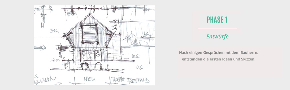 Alles beginnt mit einem Gespräch mit dem Bauherrn, nach der meist die erste Idee entsteht. Hier spielen die Wünsche des Bauherrn natürlich eine wichtige Rolle und sollten von Anfang an mit einfließen. Schon während den Besprechungen werden kleine Skizzen gezeichnet.