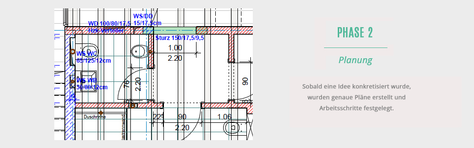 Wir erstellen eine Kosten- schätzung um im Vorfeld schon möglichst genau die Kosten eingrenzen zu kön- nen. Arbeitsplanung heißt, detailgenaue Zeichnungen zu erstellen, nach welchen das Bauvorhaben erstellt wird.