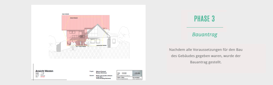 Im Anschluss an die Idee folgt der Bauantrag. Sämtliche erforderliche Unterlagen zum Erhalt der Baufreigabe werden gefertigt und bei der Baurechtsbehörde eingereicht. Hierzu gehört auch die Koordination mit den zugehörigen anderen Planungsbüros wie - Vermessung, Statik, Brandschutz oder dergleichen.